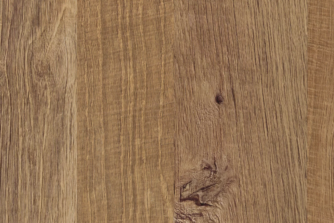 Декор H197 Древесина винтаж натуральная имитирует дощатый рисунок с элементами разной ширины, благодаря чему эта репродукция приобретает очень динамичный облик. Естественный, средний по насыщенности оттенок коричневого цвета смотрится выразительно благодаря сучьям и трещинам контрастных цветов. При этом отдельно взятые фрагменты данной репродукции имитируют поверхности в различных техниках ручной обработки: от шероховатых, получаемых при распиловке, до брашированных. В структуре ST10 Шероховатые глубокие поры шершавая на ощупь поверхность этого декора напоминает нестроганный материал. Настоящей изюминкой данного декора является «рисунок без раппорта» на всей площади столешницы, позволяющий избежать повтора деталей текстуры. Эта репродукция смотрится более аутентично на целиковой плите и при использовании на больших площадях.