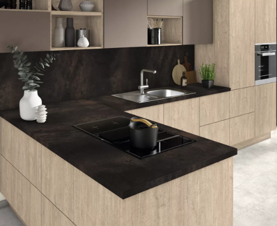 Декор F228 Титанит антрацит является самым темным вариантом среди репродукций песчаника. Он выглядит очень аутентично благодаря своему динамичному рисунку, воспроизводящему текстуру камня в несколько увеличенном масштабе. Цветовая гамма теплых и приглушенных оттенков – от коричневого до черного – открывает возможности для создания большого числа комбинаций с древесными и, конечно же, с черными декорами. За счет чередования матовых и глянцевых участков структуры ST78 Минерал гранит декор приобретает ярко выраженный рельеф и кажется еще более натуральным. Эта репродукция камня смотрится очень аутентично даже на больших площадях, так как за счет увеличенного раппорта декора в формате XL фрагменты его рисунка повторяются редко.